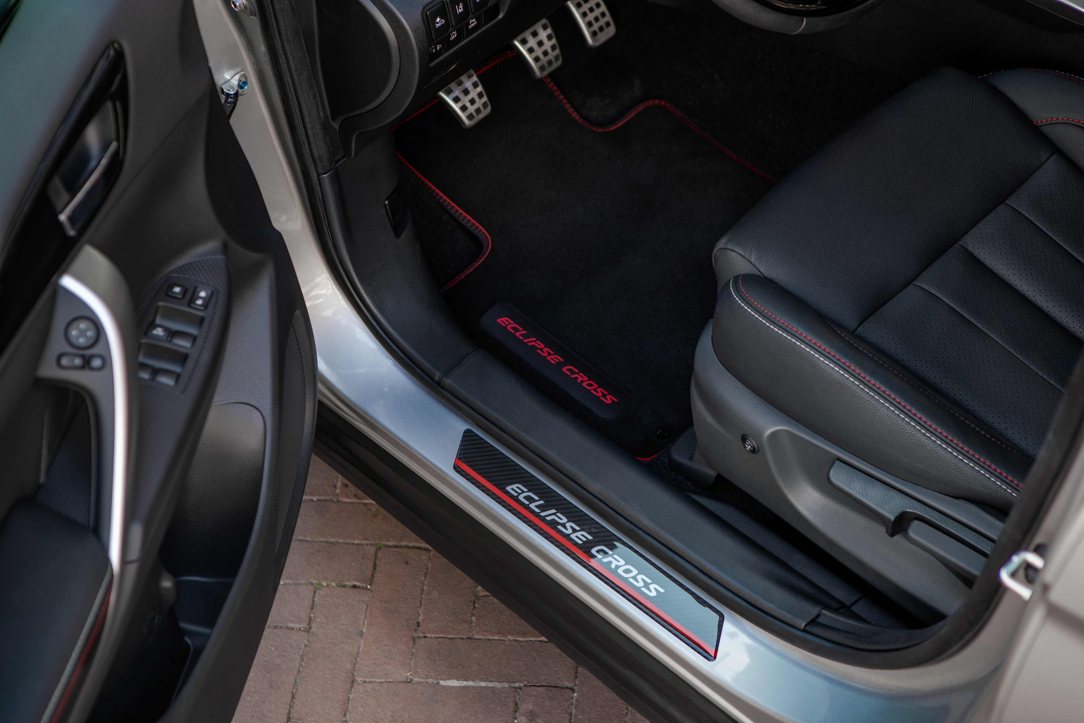 Lichtmetalen 18-inch wielen, bumperhoekskirts en zijskirts met rode accenten geven de Eclipse Cross Intense S een extra sportieve uitstraling. Na het openen van het portier springen direct de instaplijsten, sportpedalen en speciale vloermatten in het oog. Daarnaast behoren parkeersensoren, head-up display en dual-zone climate control tot de riante standaarduitrusting.