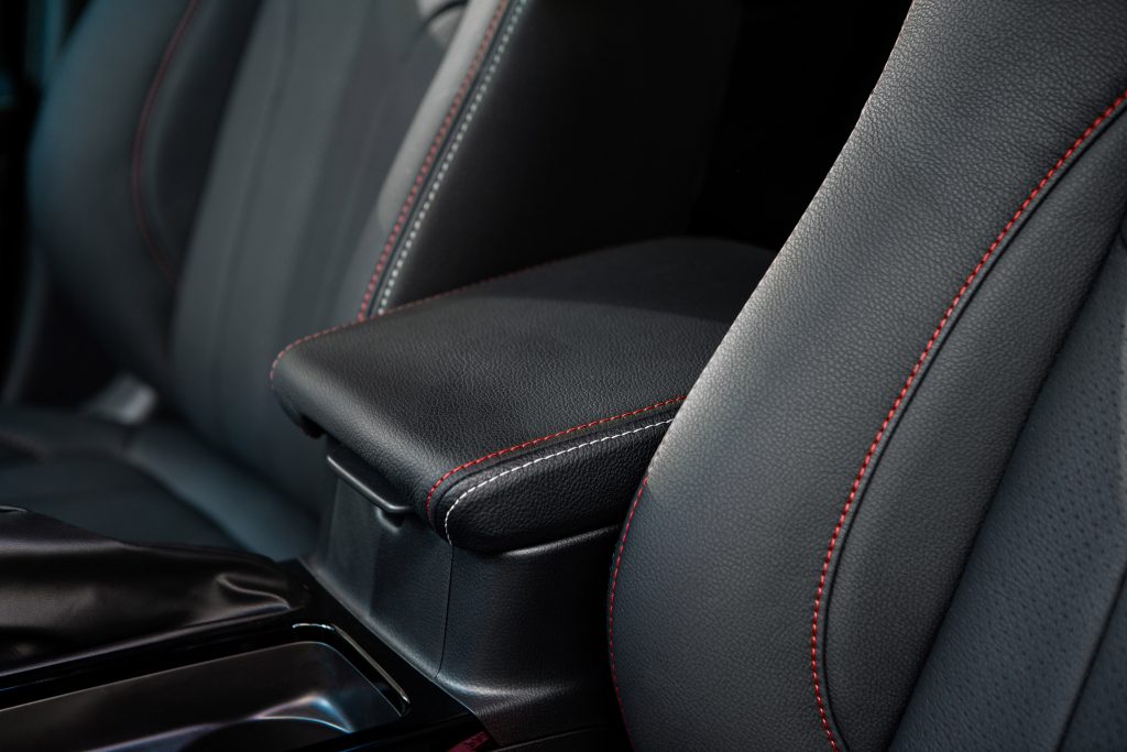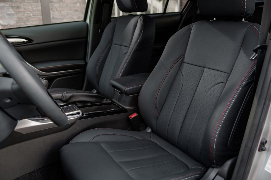 Bovenop alle genoemde extra’s is de Eclipse Cross Intense S ook nog uitgevoerd met bijzonder fraaie synthetisch lederen bekleding met rode stiknaden en verwarmbare voorstoelen. Bovendien wordt deze versie standaard en zonder meerprijs geleverd met metallic lak. De klant heeft keuze uit de carrosseriekleuren Silky White, Sterling Silver, Titanium Grey, Amethyst Black en Orient Red.